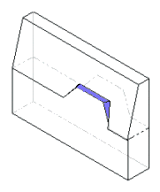 A inclinação em etapas é uma variação de inclinação de uma linha de partição. A inclinação em etapas cria uma face girada sobre o plano usado como a Direção de extração. Isso resulta em faces pequenas, representando as etapas (destacadas em azul no exemplo abaixo).