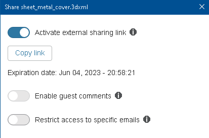 - Ativar os comentários do convidado. Permite que outras pessoas marquem ou façam comentários sobre o projeto no 3DDrive.