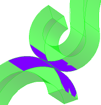 As interações com base em geometria incluem essas áreas dos componentes com entidades de geometria de contato. Para ver um par de interação entre faces que não estão inicialmente em contato, selecione Incluir interações geradas do solver (malha necessária).