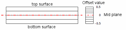 Posiciona a parte da pilha definida por um valor de offset, que é uma fração da espessura total, medido da superfície média até a superfície de referência. A figura representa os valores de offset positivos e negativos.