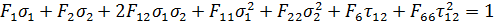 1 e 2 indicam as direções do material. X e S são as resistências normal e de cisalhamento do composto.