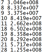 Selecione o arquivo de entrada com os dados de resultado. Os formatos de dados de entrada compatíveis são separados por vírgula (*csv) ou arquivos texto (*.txt). Os dados são armazenados em duas colunas. A primeira coluna lista os nós ou números de elementos. A segunda coluna lista os valores numéricos de plotagem (por nó ou elemento). Você pode usar um único espaço, um espaço de tabulação ou uma vírgula como delimitador. Use a letra "e" para o multiplicador da potência de 10. Não use a vírgula para representar os separadores de milhares. Exemplos de formatos de arquivo de entrada são mostrados abaixo.