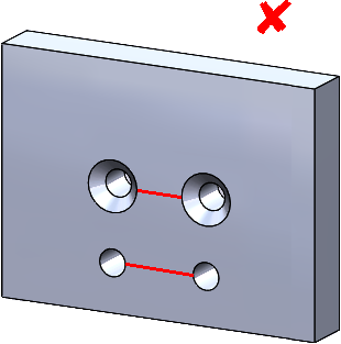 Espaçamento de furos Se os furos ficarem muito próximos uns dos outros, o material pode ficar distorcido. Para configurar esta regra, defina Razão espaçamento/espessura de furo simples e Razão espaçamento de furo escareado/espessura. Tópico paiRegras de chapas metálicas Diâmetros de furo Distâncias entre furo e aresta Raios de dobra Configuração de regras