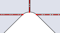 Создание снятия напряжения скругленного угла, выровненного по осевой линии, которая проходит через осевую линию прорези.