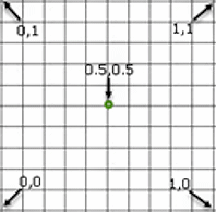 Обозначения определяются на воображаемой квадратной сетке 1 x 1, в которой значение 0,0 находится в левом нижнем углу, значение 1,1 — в верхнем правом углу. Однако они не ограничены этой сеткой. Также можно использовать числа больше 1,0 и меньше 0,0.