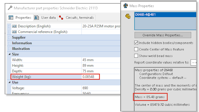Вес распространяется на массовые характеристики 3D-сборки, связанной с компонентом, которому назначена деталь производителя. Для разрезаемых компонентов, например направляющих или каналов, вес обновляется в соответствии со значением глубины, которое используется в компоновке шкафа.