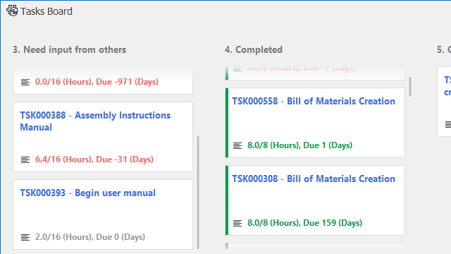 Текст имеет цветовой код в зависимости от состояния задачи. Зеленый цвет означает, что задача выполнена, красный — задача просрочена, серый — задача не просрочена.