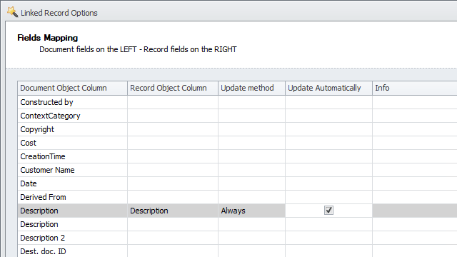 Связанная запись обновляется при изменении основной ссылки и регистрации записи. Ранее приходилось разрегистрировать связанную запись и выбирать Получить значения из основной ссылки. Можно определить каждое сопоставленное поле для автоматического обновления.