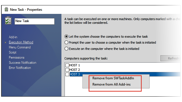 Можно удалить компьютеры из списка хостов, которые поддерживают выполнение задач.