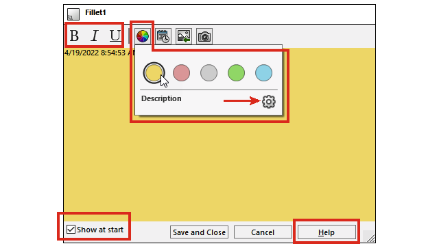 В дереве конструирования FeatureManager® рядом с элементами отображаются индикаторы комментариев по умолчанию, которые содержат комментарии. Цвет окружности соответствует цвету комментария.