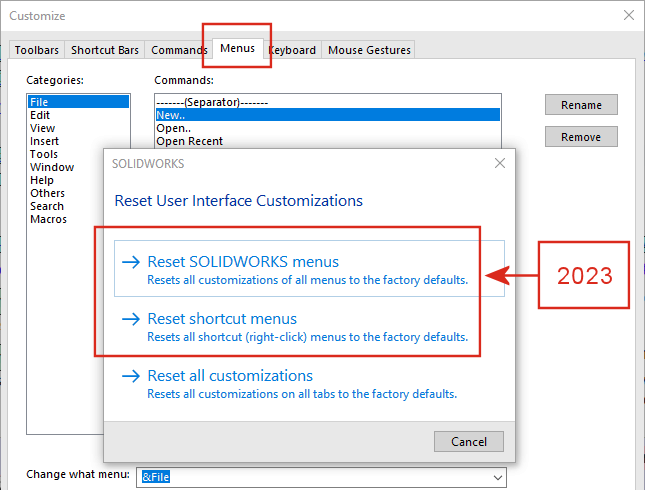 Восстановление настроек по умолчанию Стало проще восстановить заводские настройки по умолчанию в меню SOLIDWORKS®. Мастер настроек SOLIDWORKS Мастер настроек копирования переименован в "Мастер настроек SOLIDWORKS", который имеет улучшенный и упрощенный пользовательский интерфейс с тремя параметрами: Сохранить настройки Сохраняет настройки SOLIDWORKS в файл. Вы выбираете расположение файла настроек и настройки, которые требуется сохранить. Восстановить настройки Восстанавливает настройки SOLIDWORKS из файла. Сброс настроек Сбрасывает все пользовательские настройки и возвращает SOLIDWORKS к заводским настройкам по умолчанию. Можно сохранить все пользовательские настройки в файле перед сбросом SOLIDWORKS до заводских настроек по умолчанию. Диалоговое окно Настройка Кнопка отображается в нижней части каждой вкладки диалогового окна Настройка, чтобы можно было настроить параметры для сброса. Вкладка Настройка удалена. Параметры на вкладке Настройка реорганизованы следующим образом: Настройка ярлыка: Просмотреть все Удалено, так как использовалось редко. Рекомендуется не увеличивать масштаб меню и нажать , чтобы развернуть список Восстановить значения по умолчанию Перемещено на вкладку Меню > Сбросить контекстные меню. Настройка меню Просмотреть все Удалено из-за незначительного различия между этой командой и командой Восстановить значения по умолчанию для данной настройки. Восстановить значения по умолчанию Перемещено на вкладку Меню > Сбросить меню SOLIDWORKS. Пользовательские настройки и обновления При обновлении SOLIDWORKS программа сохраняет все пользовательские настройки, а также отображает все новые вкладки, меню, панели инструментов и т. д., которые были добавлены. Ранее предупреждающие диалоговые окна предлагали выбрать параметры, которые могли привести к потере настроек. На уровень вышеИнтерфейс пользователя Усовершенствования комментариев Применение допустимых имен файлов Отображение имени компонента