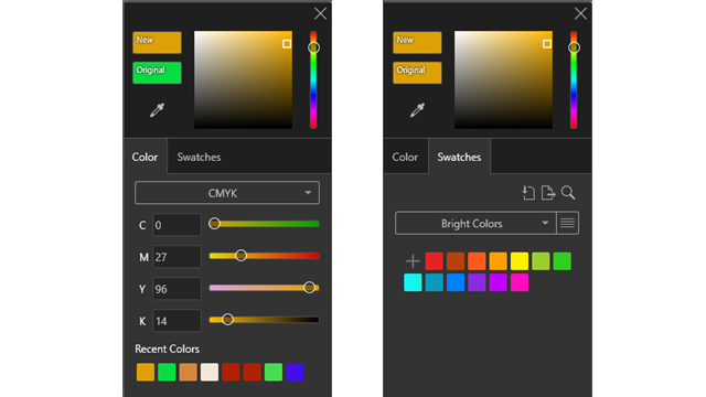 - CMYK, который позволяет изменять цвет с помощью компонентов CMYK;