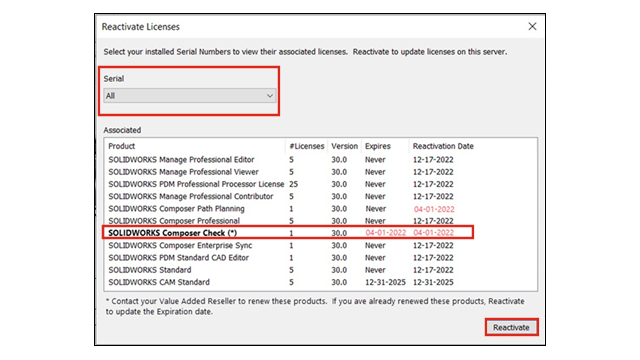 Повторная активация применяется к продуктам с лицензией SolidNetWork после обновления сервера SolidNetwork License Manager до версии 2022 или более поздней. Даже если установленные продукты относятся к более раннему выпуску, лицензии 2022 требуется повторно активировать раз в год.
