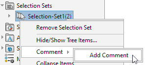 Можно перетащить выбранный элемент из дерева конструирования FeatureManager или из набора выбора в другой набор. Перетащить элементы из набора выбора сборки в набор выбора детали невозможно.