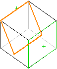 Crea un plano paralelo al plano seleccionado. Por ejemplo, seleccione una cara para una referencia y un punto para otra referencia. El software crea un plano paralelo a la cara y coincidente con el punto. |