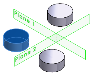 Disponible solo en piezas. Puede crear simetría de un elemento con respecto a dos planos a la vez en una operación. Seleccione planos o caras planas.