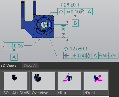3B görünümlere sahip bir SOLIDWORKS modelini eDrawings'e yayınladığınızda, metin aynı ölçekte kalır. SOLIDWORKS'te, Detaylandırma Özellikleri iletişim kutusundaki Metni her zaman aynı boyutta görüntüle seçeneğinin işaretini kaldırın ve 3B görünümler için Metin ölçeği değerini ayarlayın. eDrawings dosyasındaki tüm 3B görünümler, SOLIDWORKS dosyasındakiyle aynı metin ölçeğini korur.