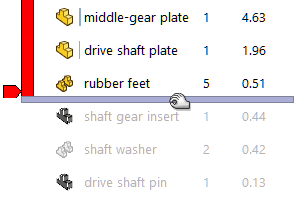 başlangıçta dosya adına göre sıralanan, montajdaki tüm bileşenlerin listesini içerir. Üç sütun vardır:
