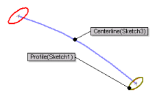 The sketch planes of all the intermediate sections are normal to the centerline. The centerline can be a sketched curve, model edge, or curve.