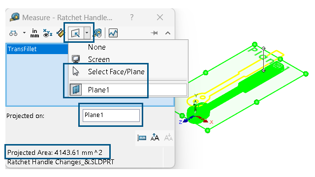 can measure the projected surface area of bodies, faces, and components. The selections must