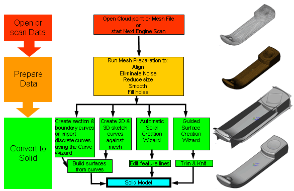 ScanTo3D reduce significativamente el tiempo requerido para construir modelos 3D complejos a partir de datos no digitales. Los diseñadores puede utilizar ScanTo3D para varios propósitos: