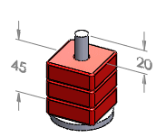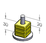 El ensamblaje tiene tres configuraciones. Cada configuración tiene bloques de distintos tamaños y, por tanto, distintos valores para H. La sujeción se crea en el contexto del ensamblaje y su altura se define como con una equidistancia de 20 mm con respecto a la cara del bloque superior.
