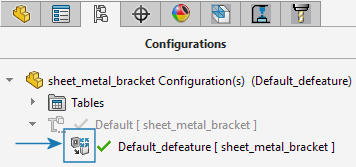 No puede crear una configuración simplificada derivada. El software evita esto en todas las áreas donde puede configurar piezas, como PropertyManagers, Propiedades personalizadas, tablas de configuración, tablas de diseño, etc.