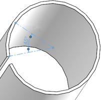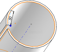Punto de referencia Especifica el punto más cercano en la arista de referencia seleccionada para usar como el inicio de la rasgadura en un modelo cilíndrico o cónico.