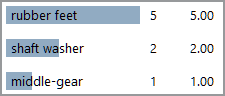 Las barras de valores se encuentran disponibles sólo para propiedades numéricas. Cuando las barras están activadas, el componente con el valor más alto muestra la barra más larga. Puede configurar la longitud de las barras para que se calculen respecto al componente con el valor más alto o a todo el ensamblaje.