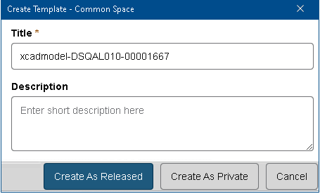 Las plantillas creadas en 3DEXPERIENCE Platform son plantillas CAD. Están indexadas para que puedan buscarse en 3DSearch. Puede cambiar el ciclo de vida de las plantillas o eliminarlas.
