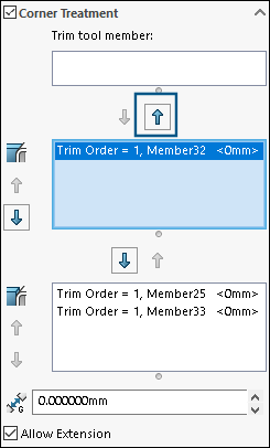 Recortar esquinas complejas Cuando asigna un miembro como la herramienta de recorte, el miembro se extiende en la zona de gráficos. En este ejemplo se muestra cómo asignar un miembro como herramienta de recorte y otro miembro como sólido de recorte plano. Para recortar esquinas complejas: Abra un modelo que incluya tres o más miembros que se entrecrucen. En el gestor de diseño del FeatureManager, haga clic con el botón derecho del ratón en Gestión de esquinas y, a continuación, en Editar operación . Aparece la pestaña Compleja del PropertyManager Gestión de esquinas. En Tratamiento de esquinas, Recorte de sólido enumera todos los miembros que se entrecruzan. Seleccione un miembro en Recorte de sólido y haga clic en para moverlo a Miembro de la herramienta de recorte. Seleccione otro miembro en Recorte de sólido y haga clic en para moverlo a Recorte plano. En Opciones de recorte plano, seleccione Primer recorte plano de contacto o Recorte plano de contacto completo . También puede especificar Automático o Definido por el usuario para ajustar la herramienta de recorte y una medición de separación . Aplique zoom a la intersección de las esquinas en la zona de gráficos para mostrar el efecto de recorte. Haga clic en . Tema principalGestión de esquinas