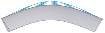 (Disponible con un mínimo de tres perfiles). Aproxima una parábola inscrita entre el primer y el último perfil. La tangencia de esta parábola conduce la superficie del recubrimiento, mediante lo cual se logra una superficie de recubrimiento más predecible y natural cuando no se especifican condiciones de relación de posición.