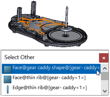 Puede utilizar el cuadro de diálogo Seleccionar otra para seleccionar entidades que están ocultas por otras entidades. Puede utilizar el cuadro de diálogo Seleccionar referencia de relación de posición para seleccionar las referencias de referencia de relación de posición.