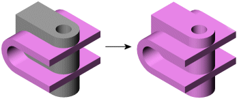 Sólo se pueden combinar los sólidos contenidos dentro de un archivo de pieza multicuerpo. No se pueden combinar dos piezas independientes. No obstante, puede crear una pieza multicuerpo mediante Insertar pieza para colocar una pieza en el otro archivo de pieza. A continuación, puede utilizar Combinar en la pieza multicuerpo.
