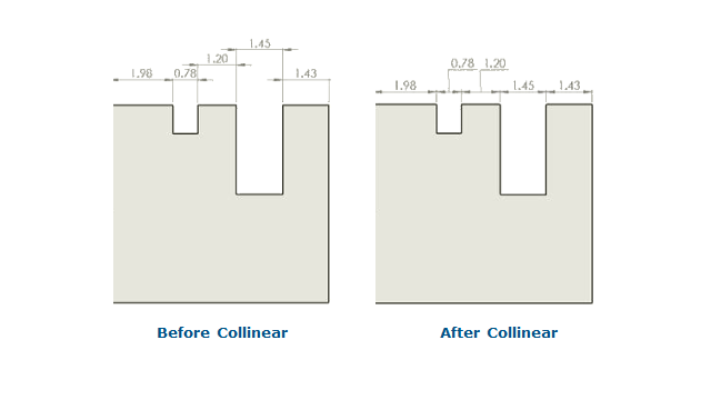 Puede crear cotas en cadena en dibujos y en croquis en piezas y ensamblajes. Las cotas en cadena son cotas de referencia conducidas por la geometría. Sus valores no se pueden cambiar ni utilizar para conducir el modelo.