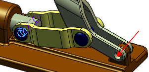 En este ejemplo cuenta con un ensamblaje de abrazadera que contiene un pasador, una articulación y una palanca. El pasador tiene dos relaciones de posición que lo mantienen en su posición, una de posición concéntrica y otra de posición coincidente. Debe crear dos nuevas instancias del pasador. Desea mantener las mismas relaciones de posición en los nuevos pasadores que las del pasador original.
