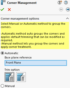 - Manual. Le permite agrupar esquinas similares y aplicar el tratamiento de esquinas.