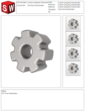 Cambio del fondo de la plantilla Puede cambiar el fondo de una plantilla eligiendo entre una selección de fondos o utilizando uno propio. Por ejemplo: Fondo inicial Fondo modificado Para cambiar el fondo de la plantilla: En el Editor de plantillas PDF 3D, haga clic en Fondo. En el cuadro de diálogo, seleccione una imagen de fondo o busque una imagen. Haga clic en Abrir. El fondo de la plantilla cambia a la nueva imagen. Tema principalImágenes, texto y tablas Inserción de rectángulos Insertar un espacio reservado para la Tabla de pliegue Inserción de un espacio reservado de lista de materiales Insertar un espacio reservado para la tabla de taladros Inserción de una tabla genérica en una plantilla Adición de una imagen a una plantilla