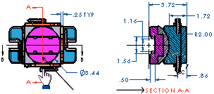 Linie przekroju i adnotacje kół szczegółów w plikach rysunków posiadają hiperłącza do powiązanych przekrojów lub widoków szczegółów. Gdy przemieścimy wskaźnik nad linię przekroju lub koło szczegółów, podświetlana jest adnotacja dla powiązanego widoku i na odwrót.