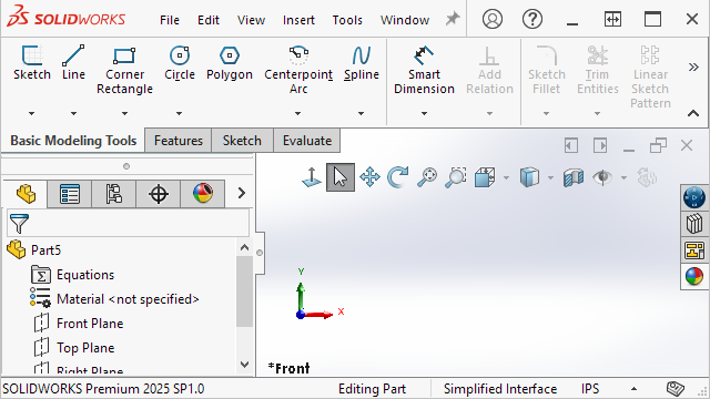 Упрощенный интерфейс — это рабочее пространство, представляющее собой окно SOLIDWORKS с сокращенным пользовательским интерфейсом. Окно содержит основные элементы пользовательского интерфейса, адаптированные к открытому типу документа.