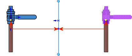 此示例比较了将阀子装配体镜向到第二个管道时的镜向类型选项。