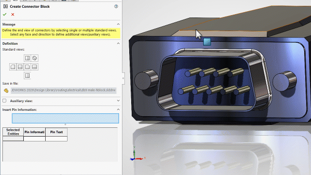 5. Em Inserir informações do pino, selecione a face de cada conector que você deseja que tenha informações do pino.