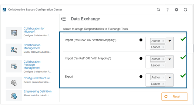 El administrador de 3DEXPERIENCE platform puede especificar los controles de acceso del usuario para los comandos Exportar como paquete e Importar paquete en MySession. Estos comandos están disponibles cuando los usuarios activen el complemento 3D