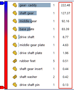 分排单属性列表 在装配体可视化中,您可以根据其自定义的属性值来排定零部件。 FeatureManager 设计树中的 装配体可视化选项卡包含装配体中所有零部件列表,该表以文件名称初始分类。 要分排清单: 单击列标题可按该属性分排零部件。例如,要按零部件质量分排,请单击质量。 再次单击可按相反顺序分排。 您可以通过双击列分隔符来调整列宽度,以适应列内容。 父主题分排清单 分排多属性列表 更改列举的属性 为列生成方程式。