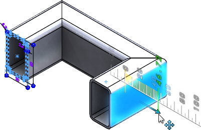 Selezionare la faccia da trascinare. La freccia di trascinamento appare nella direzione più vicina disponibile per il trascinamento. È possibile spostare la saldatura per allungare i corpi attaccati e lo schizzo di guida.