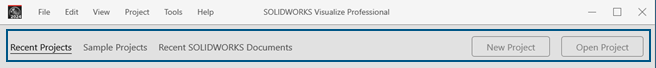 Recent Projects, Sample Projects, and Recent SOLIDWORKS Documents in most cases.