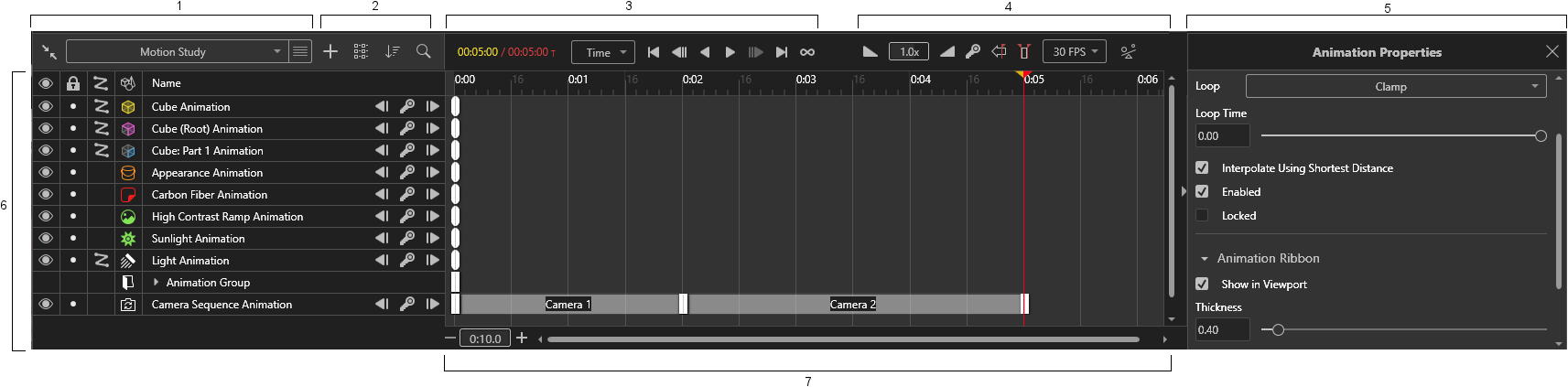 The animation timeline and controls are available only in SOLIDWORKS Visualize Professional.