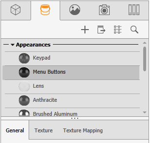 To select an appearance and display its parameters, click its name or