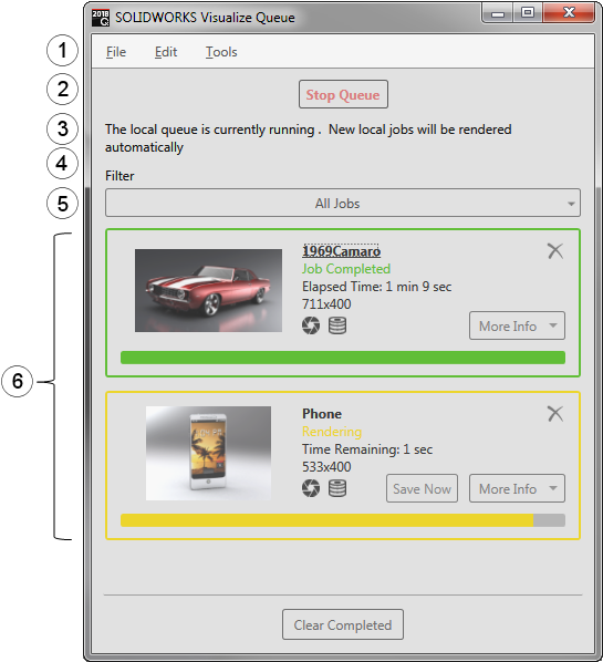 Lists all the projects you sent to the queue in the order they were sent. You can change the order.