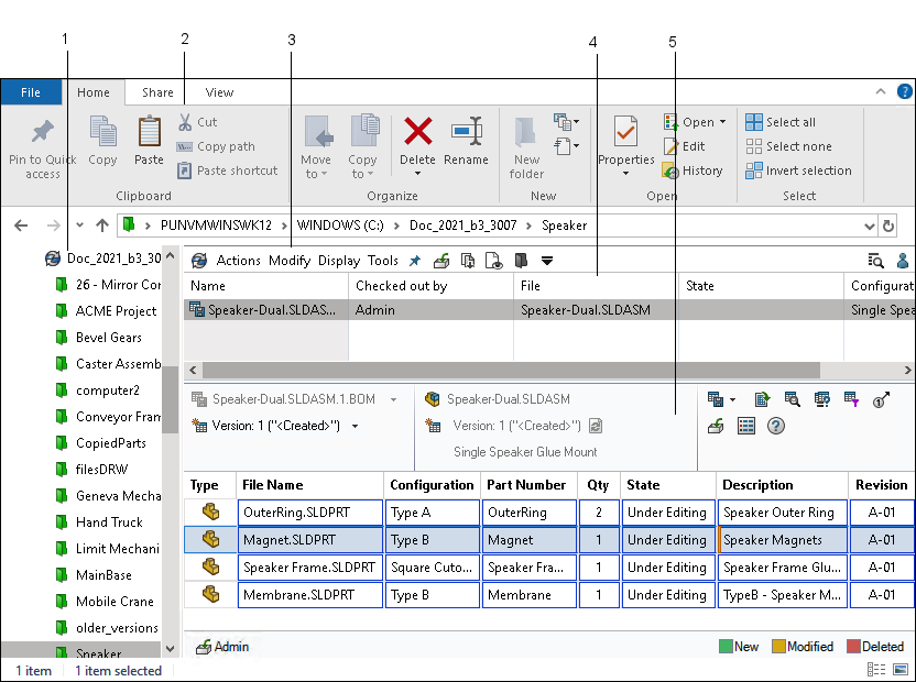 Se il sistema è connesso a un vault, il pulsante ? del controllo della barra multifunzione Esplora file di Windows apre la guida di Esplora file SOLIDWORKS PDM.